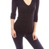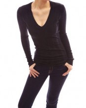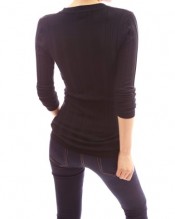 PattyBoutik Smart V-Neck Ribbed Knit Long Sleeve Jumper Tunic Top (Black 8/10)