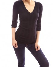 Smart V-Neck Ribbed Knit Long Sleeve Jumper Tunic Top.