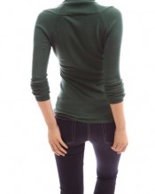 PattyBoutik Stand Collar Deep V Neck Crossover Empire Waist Pullover Knit Jumper (Green 8/10)