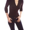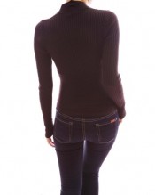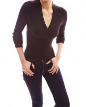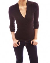 Trendy Ribbed V-Neck Crossover Empire Waist Long Sleeve Knit Jumper Top. Little Standing Collar at the Back.