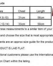 Approximate measurement for the product when laid flat are S/M Chest 31m, Length 56cm; M/L Chest 33cm, Length 58cm.