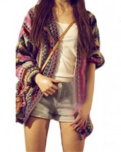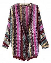 Sanwood Women’s BOHO Wave Stripe Knit Top (Purple)