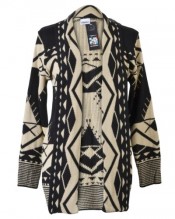SHUKAN FASHIONS – WOMEN LADIES BEIGE KNITTED OPEN RIBBED AZTEC PRINT BOYFRIEND CARDIGAN 8-14