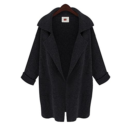 Women Long Sleeve Jacket Knitted Cardigan Coat Parka Trench Windbreaker (XL, Dark Gray)