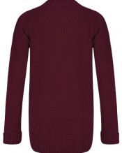 Womens Ladies Chunky Cable Knitted Long Sleeve Button Grandad Knitwear Cardigan – WINE – One Size(UK8-14) – (Mixed Fibres)