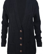 Womens New Long Sleeves Ladies Chunky Aran Button Fastening Cable Knit Sweater Grandad Cardigan Top Plus Size Black Size 20 – 22