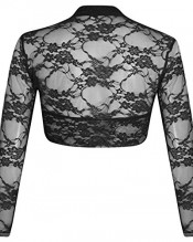 Womens Plus Size Long Sleeve Floral Lace Crochet Bolero Shrug Cardigan Crop Top – BLACK – UK 20/22 – (100% Polyester)