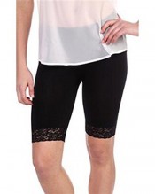 LADIES COTTON LYCRA STRETCHY(REF:2195 LACED) TRIM ABOVE KNEE CYCLING SHORTS ACTIVE LEGGING WITH LACE DETAIL (XXX-LARGE, BLACK)