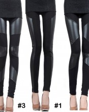 SAVFY® Fashion Sexy Woman Lady Stitching Stretchy Faux Leather Back Tight Leggings Pants