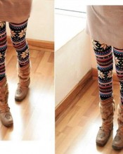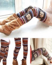 SODIAL(TM) HOT Womens Ladies Soft Casual Warm Knitted Colorful Crystal Snowflake Pattern Fashion Leggings Tights Pants Trousers
