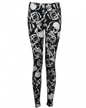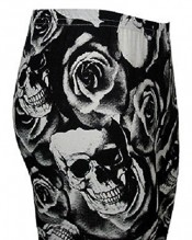 The Home of Fashion New Ladies Black and White Skull and Rose Print Stretchy Leggings Size 8-14 (14 (ML))