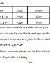 Approximate measurement for the product when laid flat are S/M Chest 40cm Length 42cm; M/L Chest 42cm Length 44cm.