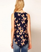 Women Butterfly Shirts Crew Vest