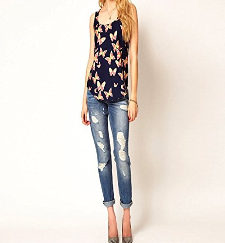 Amonfineshop Slender Women Butterfly Print Sleeveless Chiffon Tank Top Shirts Crew Vest (M)
