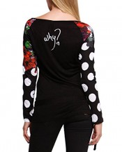 T SHIRT LOLA 2 Top fantasy long Sleeve Printed with white polka dots and flowers on black background Great boat neck black gimp At the hips a black drawstring on hips Signature of silver embroidered mark on the bottom of the front Solid black back with interrogation point painted silver COMPOSITION 100% VISCOSE