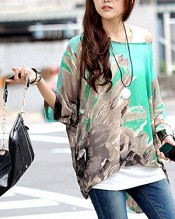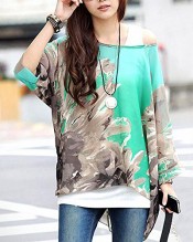 Feature:Bohemian Style Big Size Casual Chiffon Blouse,Batwing Dolman Sleeve And Round Neck.