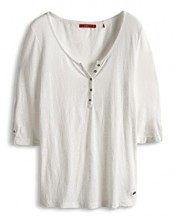 edc by Esprit Women’s 084CC1K010 Button Front Long Sleeve T-Shirt, Off-White (Ivory Cream), Size 14 (Manufacturer Size:Large)