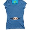 Elusive Ladies Brown Eyes Baby Peeping Through my bump Womens T Shirt – Blue – Large