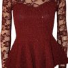 Fashion 4 Less Womens Long Sleeve Lace Mesh Peplum Top (ML-UK(12-14), Wine)