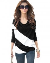Hee Grand Women Color-Contrasted Loose T-Shirt Long Sleeve S/M Black