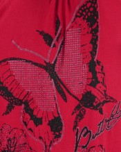 Ladies Long Glitter Butterfly Top in Red UK 16/18
