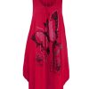 Ladies Long Glitter Butterfly Top in Red UK 16/18
