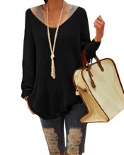Ladies Scoop Neck Stretchy Long Sleeve Knitted Tunic Top