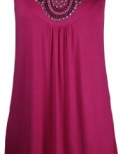 New Ladies Long Beaded Diamante Sleeveless T-Shirt Tops Womens Scoop Neck Stud Bead Vest Top Plus Size Cerise Fuschia Size 18