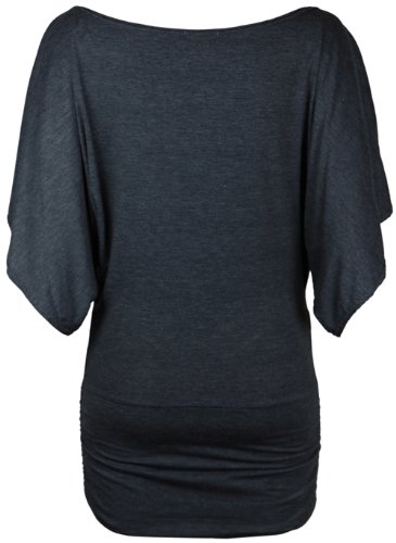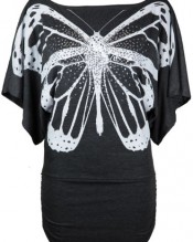 New Ladies Short Sleeve Glitter Butterfly T-Shirt Womens Stretch Gathered Batwing Top Plus Size Dark Grey Size 20 22