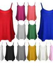 New Womens Ladies Basic Plain Camisole Thin Strap Stretchy Flared Swing Vest Top