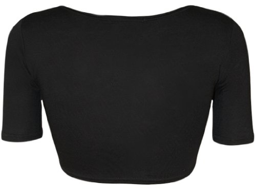 New Womens Plain Crop Short Sleeve Top Round Neck Stretch Ladies Bra Vest – Black – 8/10