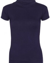 New Womens Turtle Polo Neck T-Shirt Tops Ladies Short Sleeve Stretch Fitted Gathered Ruched Top Navy Blue Size 12 – 14