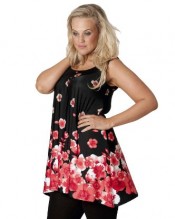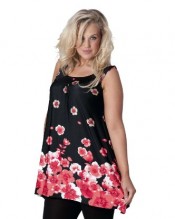 Poppy Print Round Neck Sleeveless Asymmetric Hem Plus Size