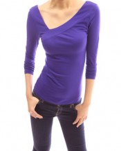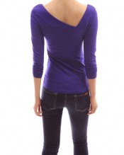 Cotton Asymmetrical Neck Long Sleeve Stretch Solid Blouse Top.