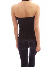 Halter Draping Cowl Neck Sleeveless Ruched Twinset Party Clubwear Blouse Top. Embellished with metallic tube shape beads on halter strings. It comes with a matching tube top. .