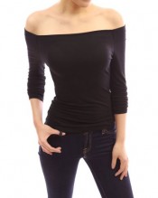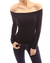 PattyBoutik Solid Fitted Off Shoulder Long Sleeve Blouse Top (Black 8/10)
