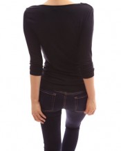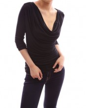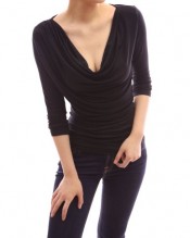PattyBoutik Unique Drapes Front Cowl Neck 3/4 Sleeve Blouse Top (Black 14)