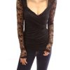 PattyBoutik V Neck Overlay Floral Lace Long Sleeve Stretch Blouse Top (Black 14)
