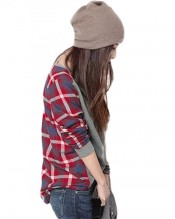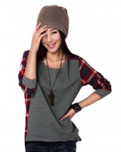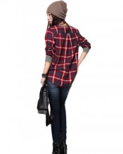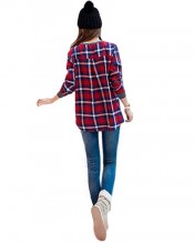 Sanwood Women’s Loose Long Sleeve Plaid t-shirt Top (M)