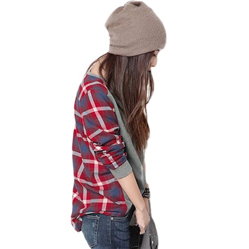 Sanwood Women’s Loose Long Sleeve Plaid t-shirt Top (M)