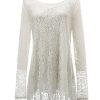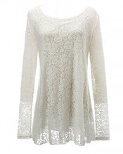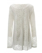 Sexy Women Girls Casual Sheer Lace Long Sleeve Blouse Shirt Loose Tunic Tops White,S/UK 8