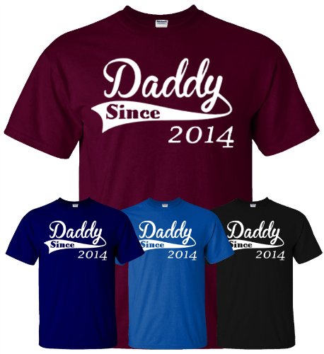 SnS Online Mens Daddy Since 2014 Father Day Gift New Born Baby Unisex T-shirt Tee Top Cotton T Shirt – Burgundy – L – Chest : 42″ – 44″