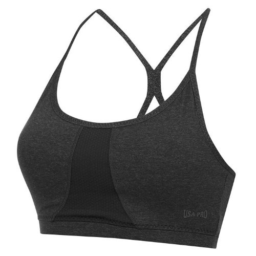 The USA Pro Yoga Crop Top Ladies features a racer back style back with straps. This Ladies Sports Bra is completed with an elasticated edge and removable cups, finished with the USA logo.