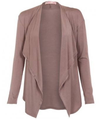 Womens Asymmetric Waterfall Open Plain Jersey Cardigan Long Top Cover Up Shrug (Mocha,8)