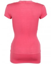 Hip length top, made from soft jersey fabric, featuring high neck at the reverse, low cut styling with knot detail to the banded hemline and white insert vest to the front. Removable chain necklace included.