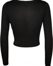 Womens Crop Long Sleeve T Shirt Ladies Short Plain Round Neck Top – Black – 8/10