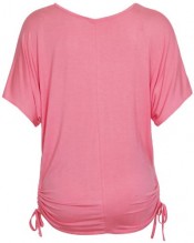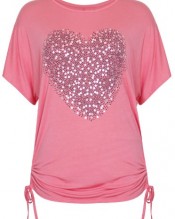 Womens Heart Printed Sequin Ladies Stretch Short Batwing Sleeve Round Neckline Tie T-Shirt Top Plus Size Coral Size 16 – 18 (XL)