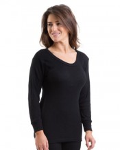 Womens Jacquard Rib Long Sleeve Thermal Vest Underwear, Various Colours & Sizes (Bust: 46-48 Inches [20-24], Black)