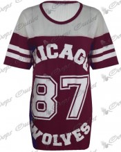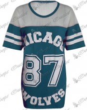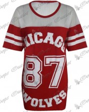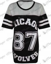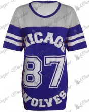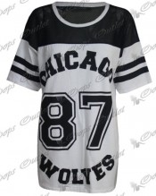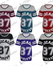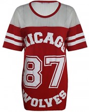 Womens Ladies Chicago 87 Wolves Baggy Oversize Baseball T Shirt Dress Long Top