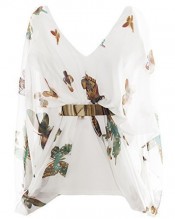 Womens Ladies Drape Chiffon Batwing Butterfly Gold Buckle V Neck Gypsy Tunic Top /COLOR: CREAM GREEN /SIZE: 20